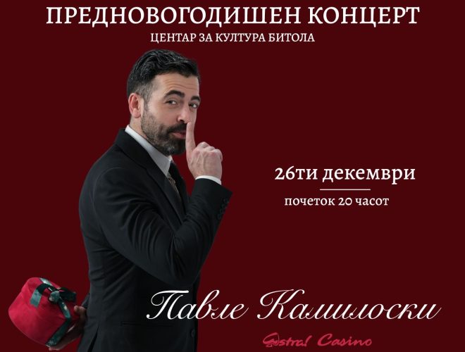 Битола оваа година ќе блесне во вистинска празнична магија! На 26 декември, со почеток во 20:00 часот, во Центарот за Култура Битола ќе се одржи традиционалниот предновогодишен концерт на еден од најголемите џентлмени на македонската музичка сцена – Павле Камилоски. Настанот, кој низ годините е препознатлив по празничната енергија и исклучителната музичка атмосфера, за првпат се сели од Скопје во Битола, а негов генерален спонзор е Астра Казино.